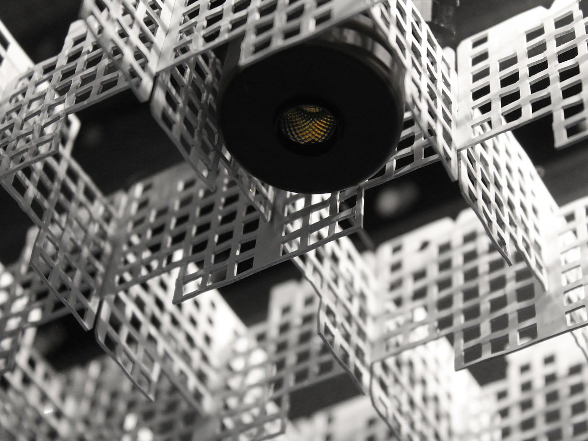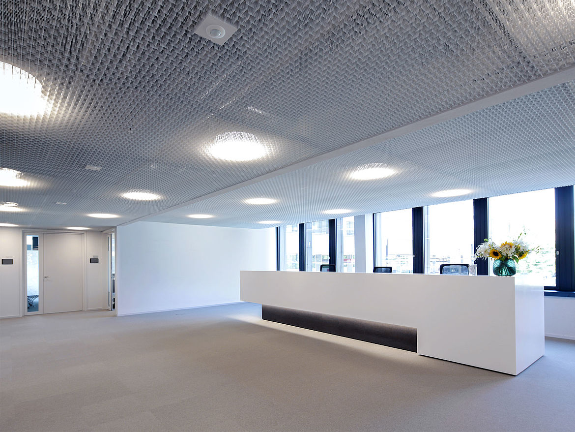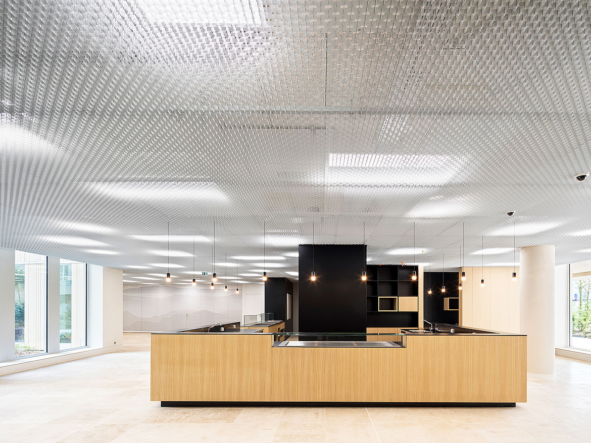 Le plafond multidirectionnel TICELL-N doit sa spécificité au tissage de ces lames perforées, ce qui permet à la lumière de se refléter. Le résultat donne une apparence visuelle singulière et captivante. Ce plafond alvéolaire moderne est particulièrement bien adapté aux projets qui favorisent un design original.