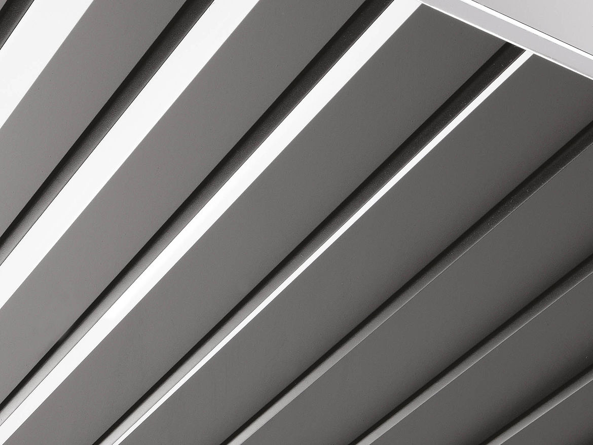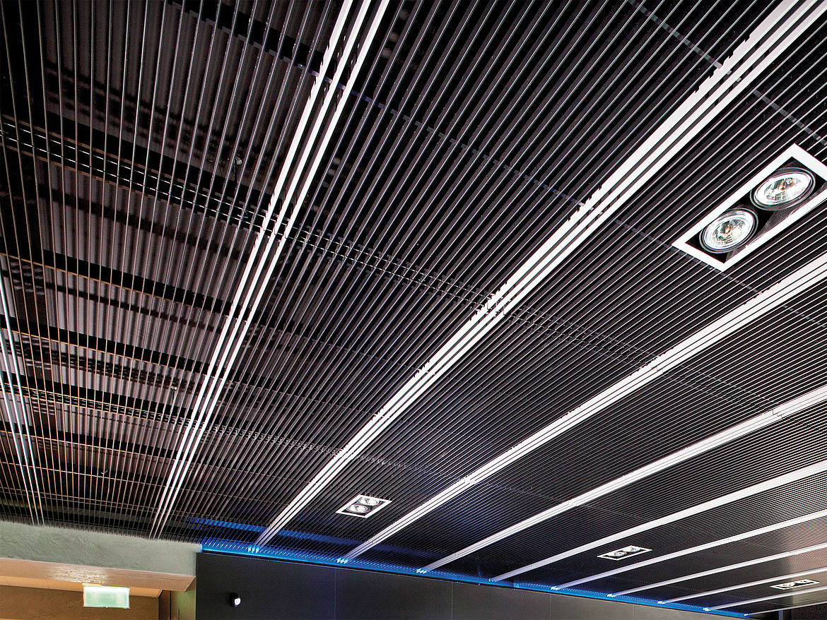 VARIO 3 est un plafond filiforme de haute qualité au design élégant et contemporain. Le procédé d’encochage et le pliage à angles vifs assurent un alignement optimal des lames entre elles, et une parfaite rigidité. La disposition des lames en module ou en rang souligne la texture du plafond.